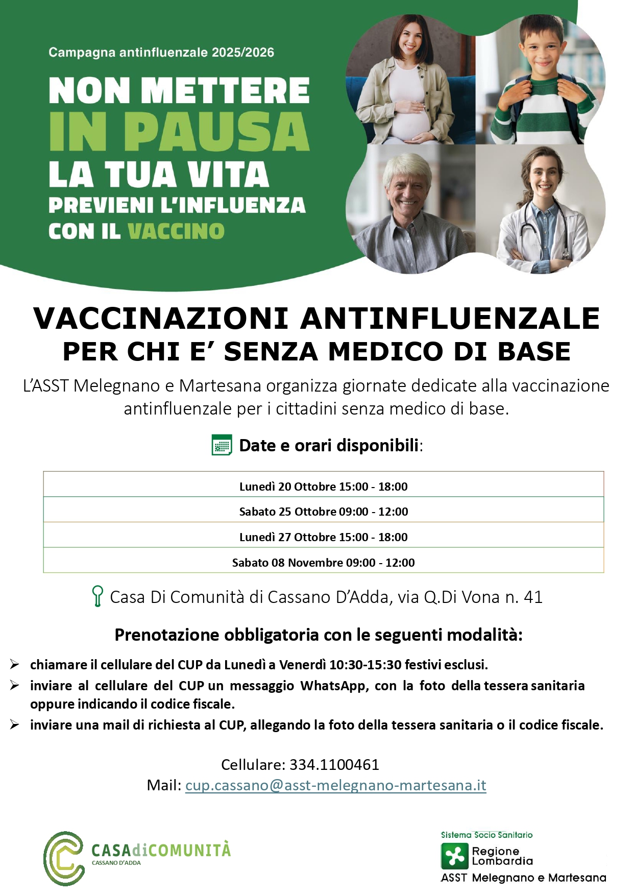 VACCINAZIONI ANTINFLUENZALE PER CHI E’ SENZA MEDICO DI BASE