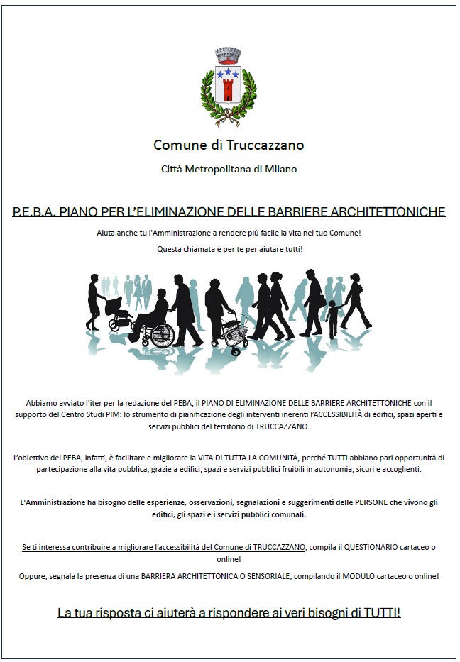 Abbiamo avviato l’iter per la redazione del PEBA, il PIANO DI ELIMINAZIONE DELLE BARRIERE ARCHITETTONICHE